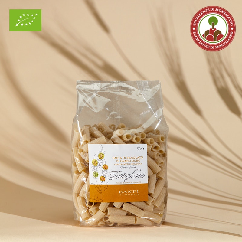 The complete production process of the pasta from organic farming on the Banfi estate is based on a short supply chain: from the fields in Montalcino, to the milling of the wheat at Borgioli mill in Calenzano, to the artisanal processing and packaging at the historical Fabbri pasta factory.